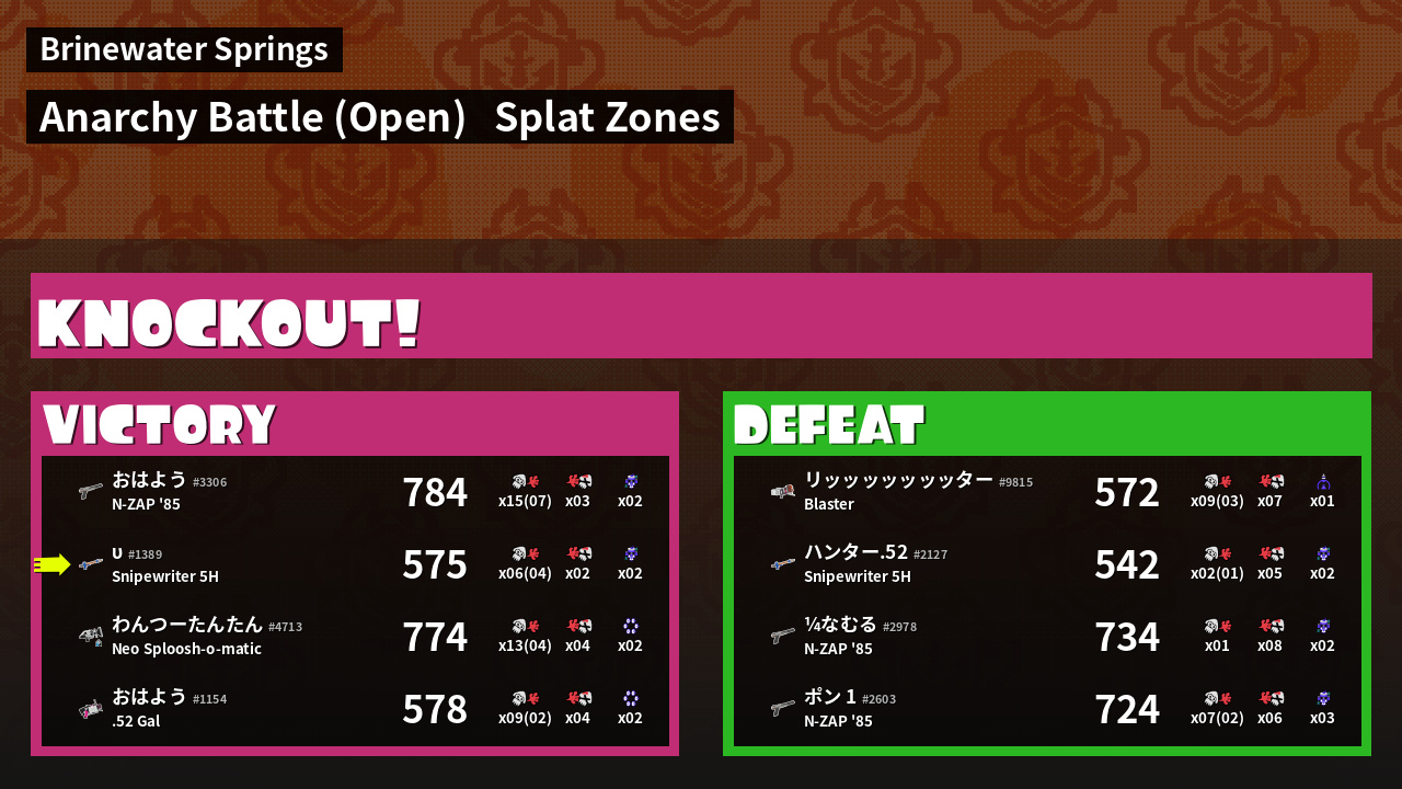 | Mode | Splat Zones - Anarchy Battle (Open) | ||