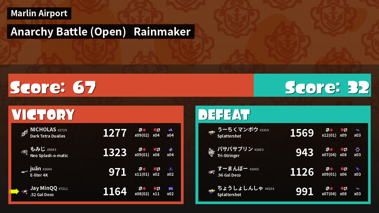 | Mode | Rainmaker - Anarchy Battle (Open) | ||