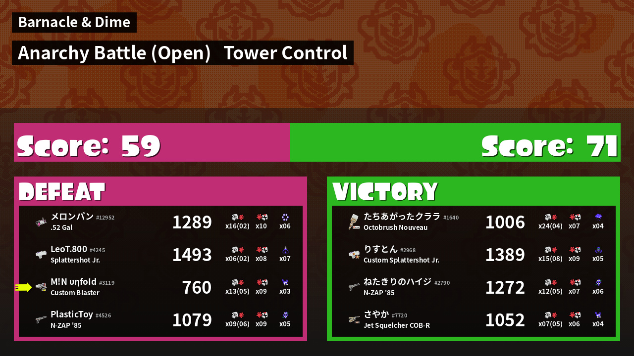 | Mode | Tower Control - Anarchy Battle (Open) | ||