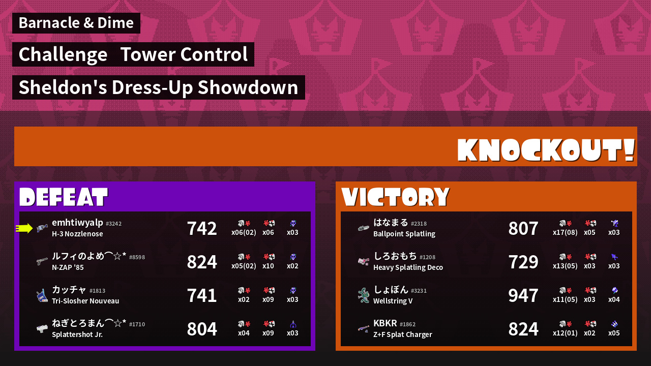 | Medals | #1 Overall Splatter #1 Enemy Splatter #1 Splat Assister | ||