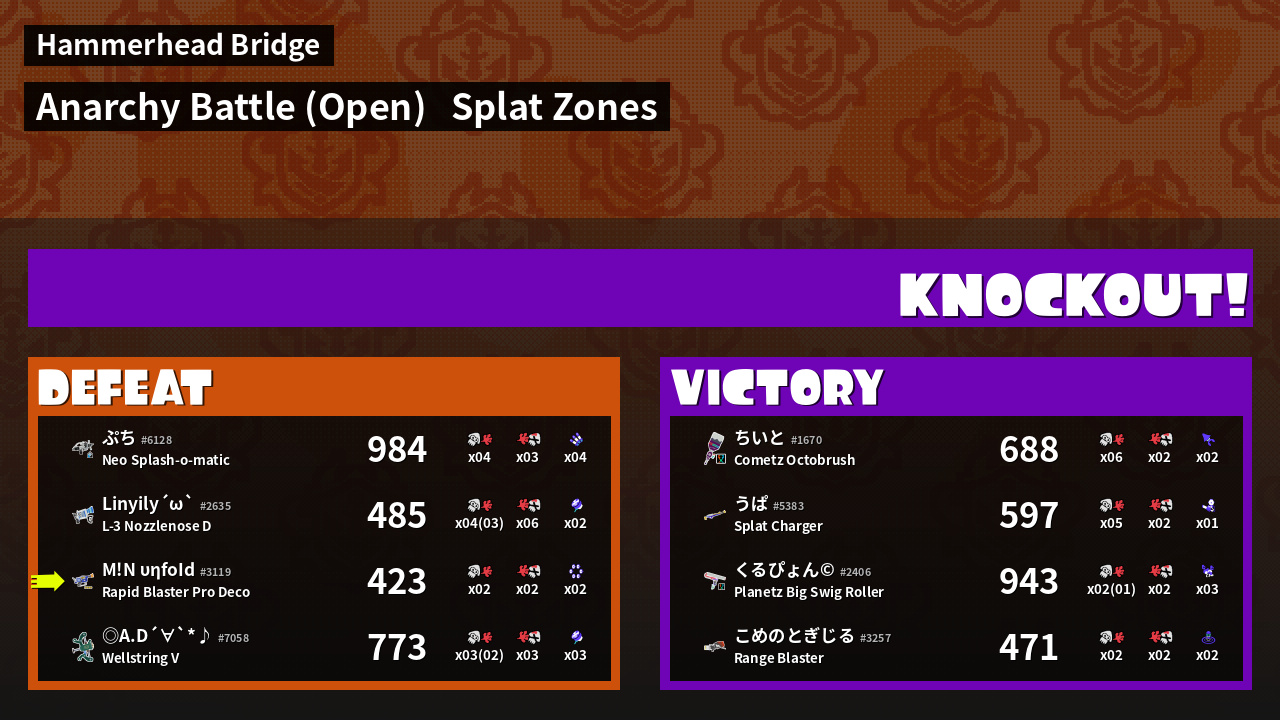 | Mode | Splat Zones - Anarchy Battle (Open) | ||