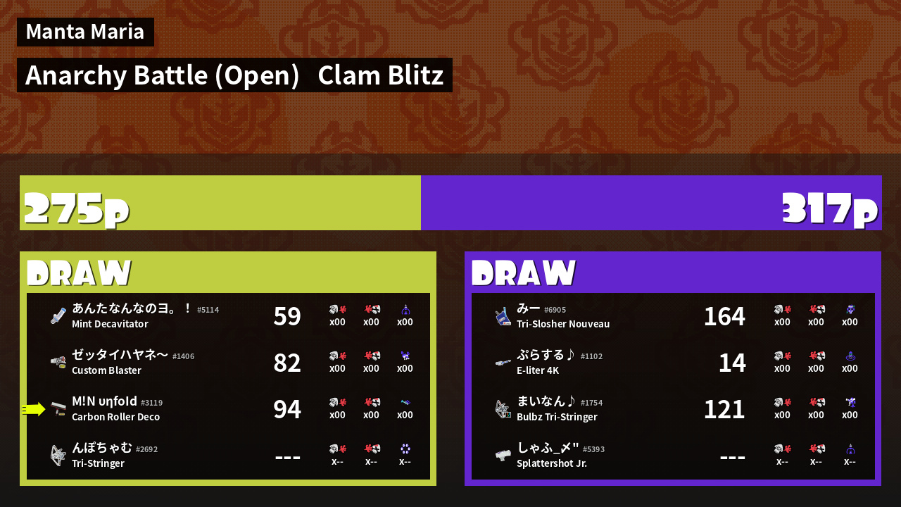 | Mode | Clam Blitz - Anarchy Battle (Open) | ||