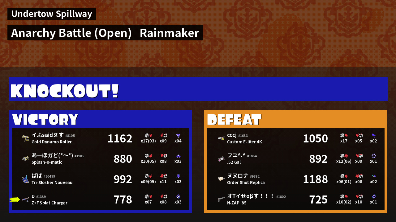 | Mode | Rainmaker - Anarchy Battle (Open) | ||