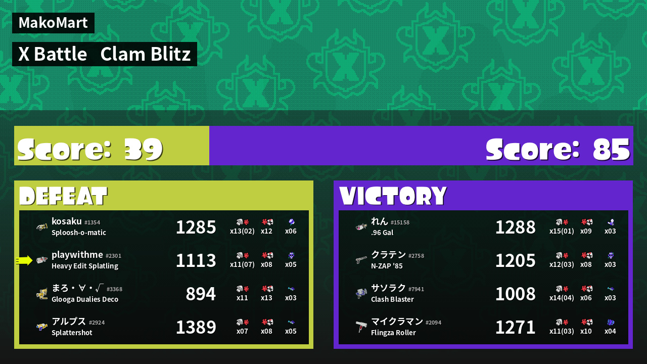 | Mode | Clam Blitz - X Battle | ||