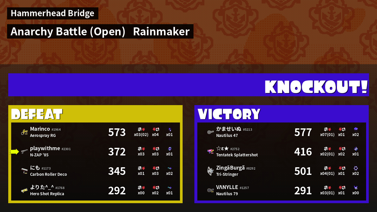 | Mode | Rainmaker - Anarchy Battle (Open) | ||