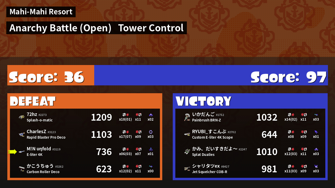 | Mode | Tower Control - Anarchy Battle (Open) | ||