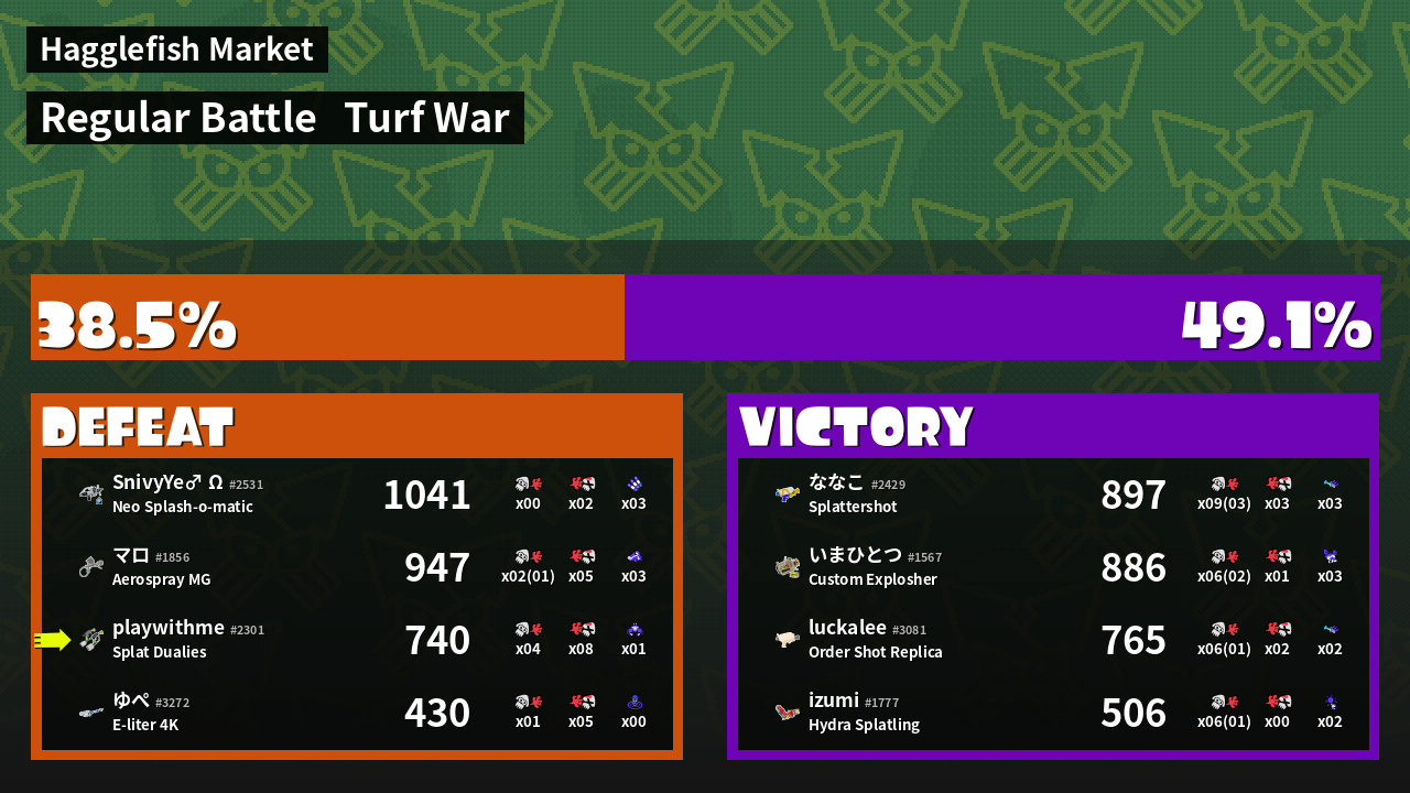 | Medals | #1 Overall Splatter #1 Enemy Splatter First Splat! | ||