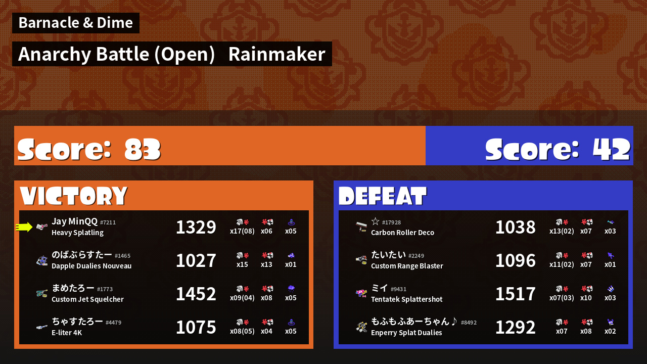 | Mode | Rainmaker - Anarchy Battle (Open) | ||