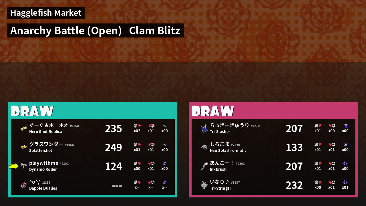| Mode | Clam Blitz - Anarchy Battle (Open) | ||