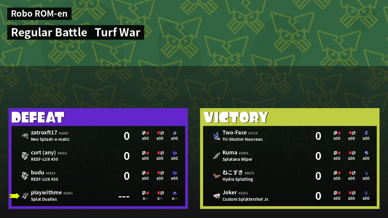 | Mode | Turf War - Regular Battle | ||