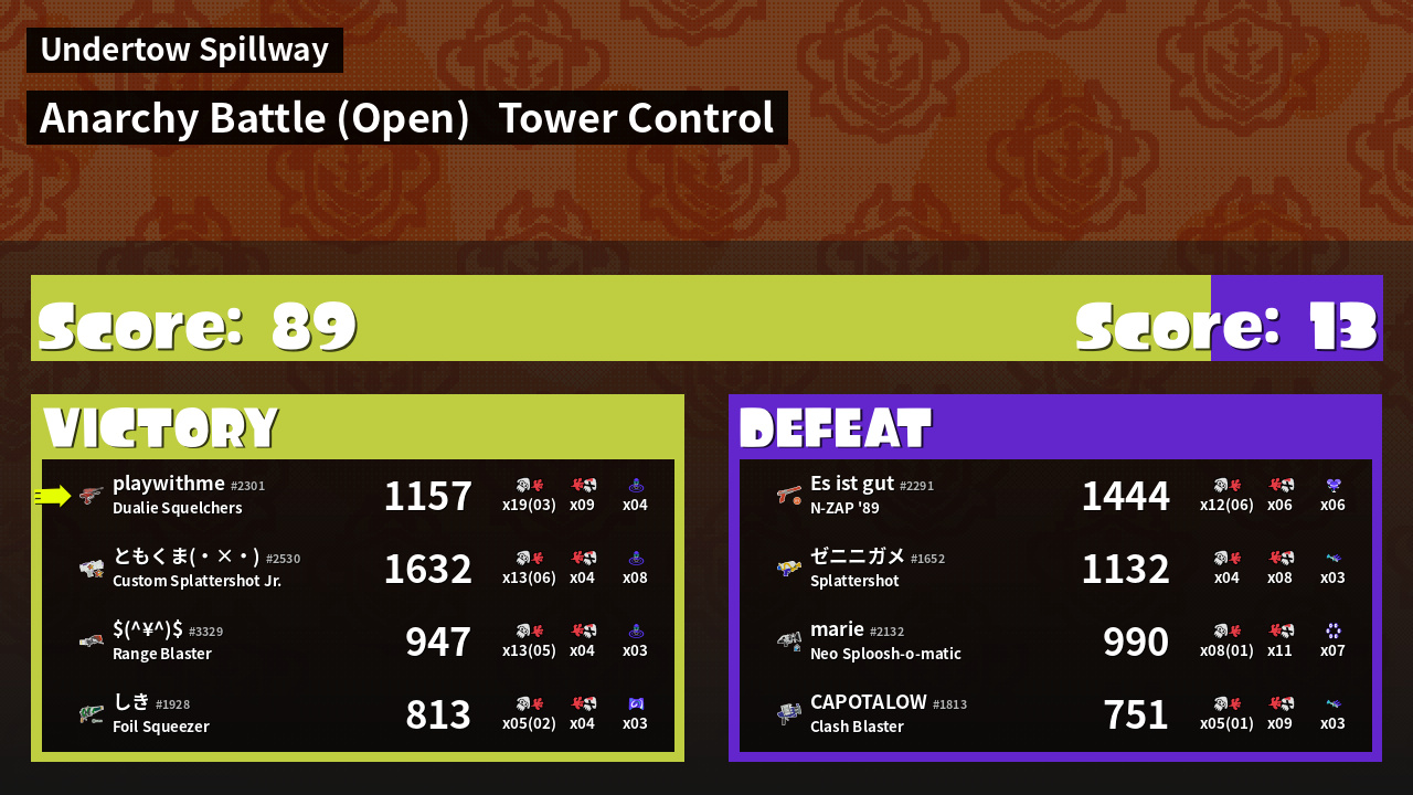 | Mode | Tower Control - Anarchy Battle (Open) | ||