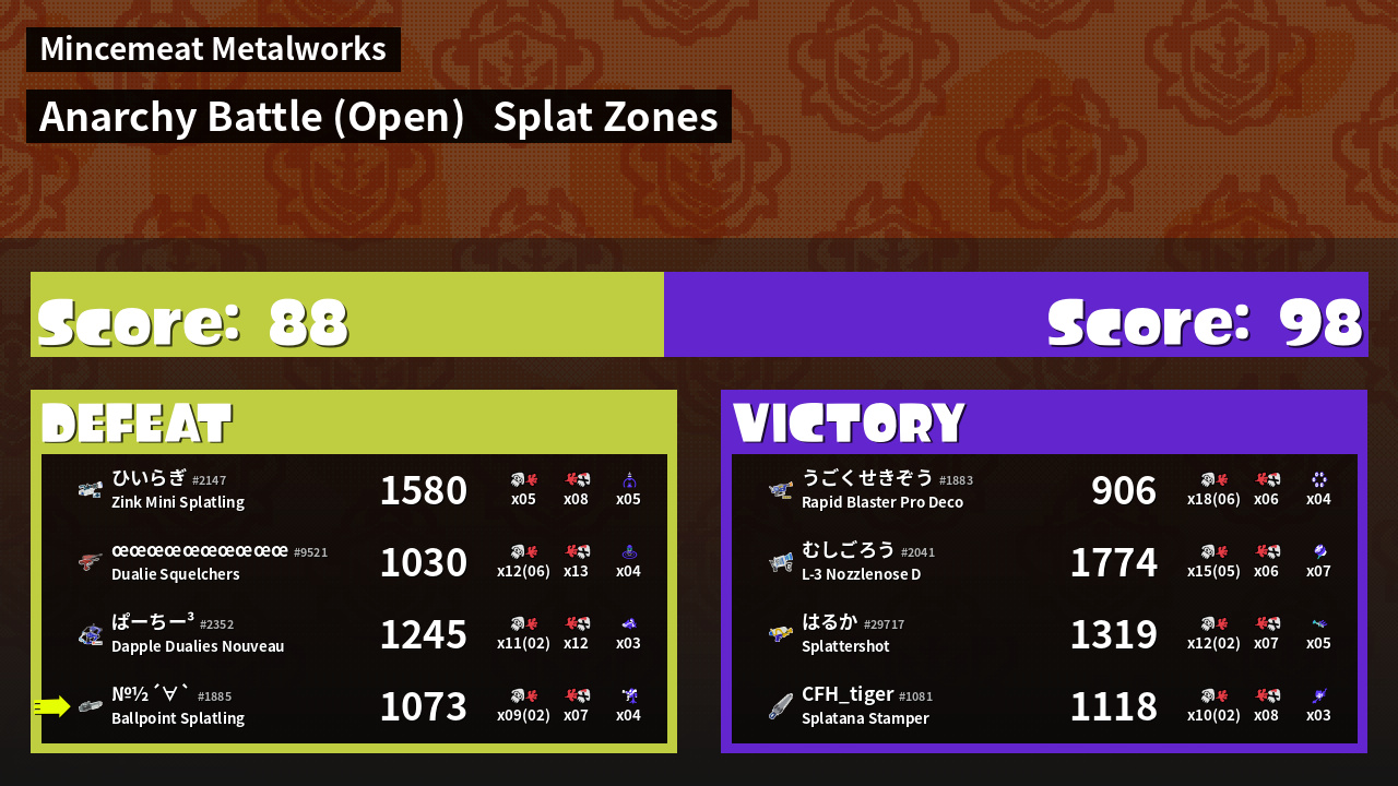 | Mode | Splat Zones - Anarchy Battle (Open) | ||