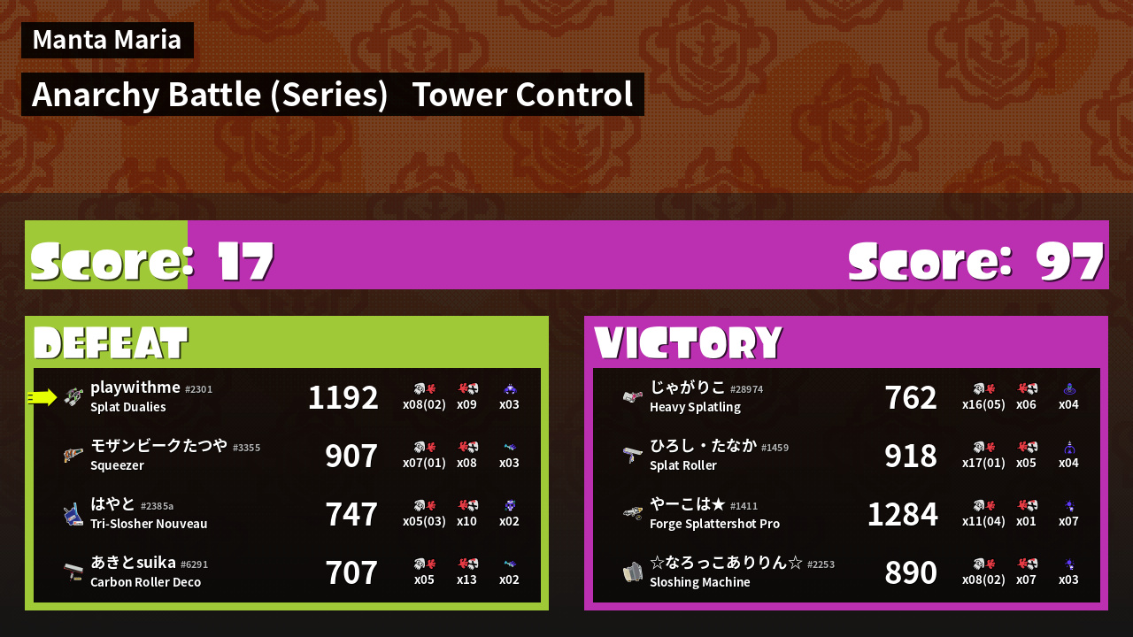 | Mode | Tower Control - Anarchy Battle (Series) | ||