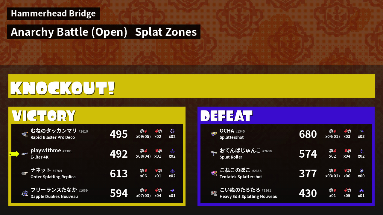 | Mode | Splat Zones - Anarchy Battle (Open) | ||