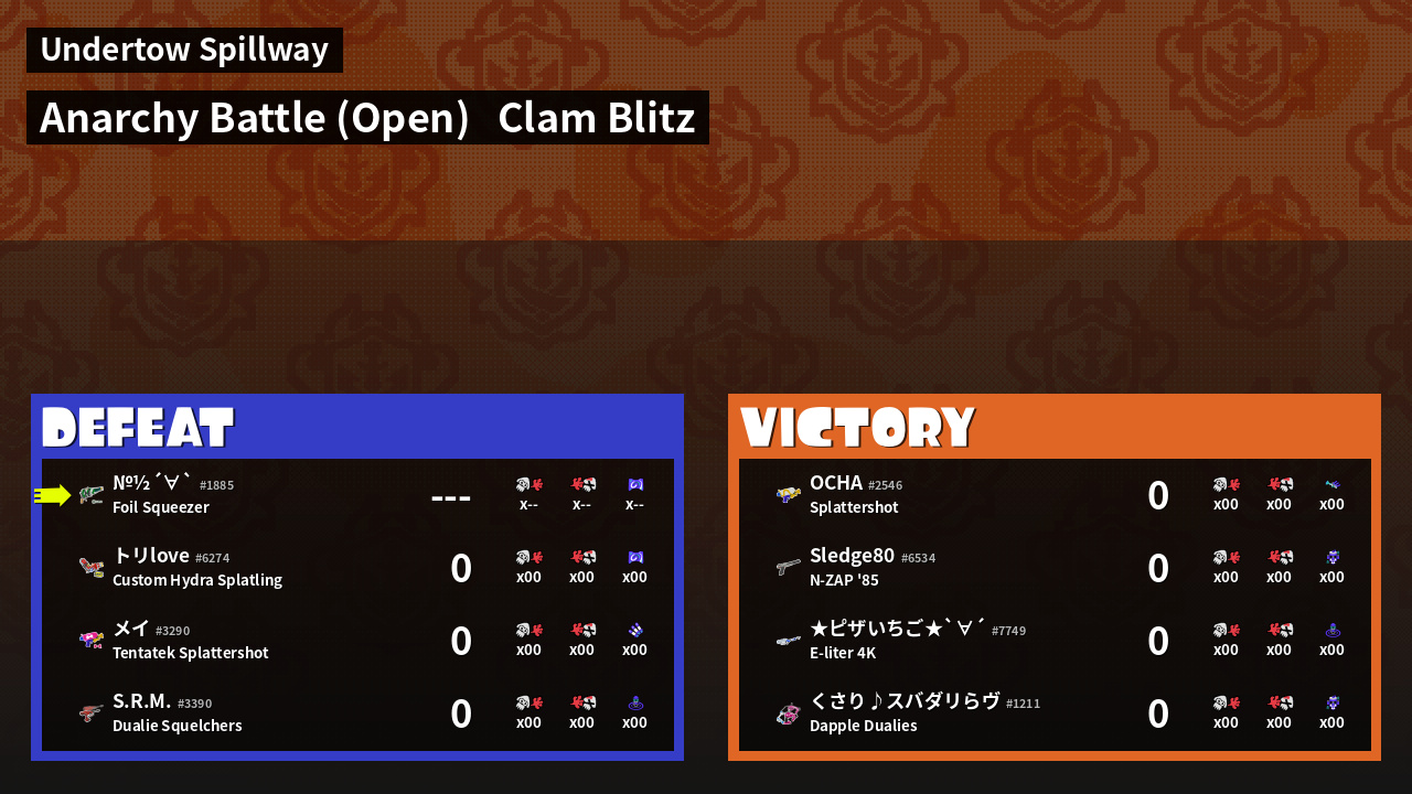 | Mode | Clam Blitz - Anarchy Battle (Open) | ||