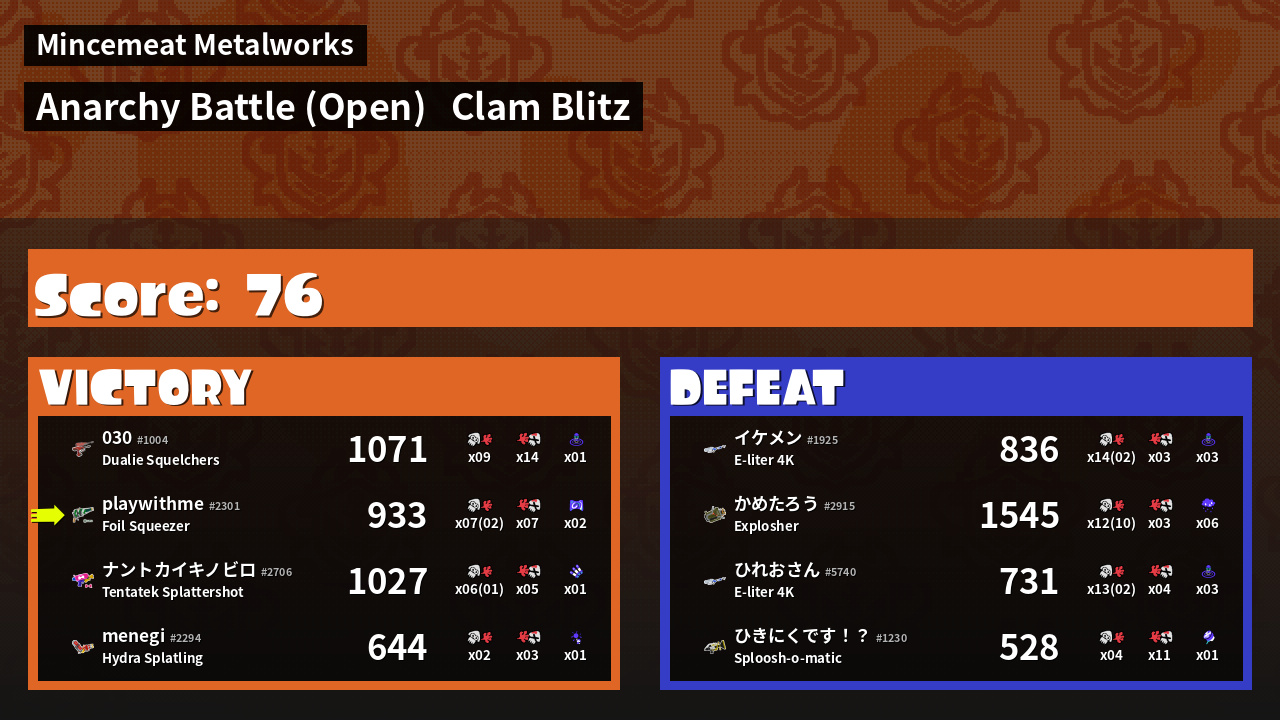 | Mode | Clam Blitz - Anarchy Battle (Open) | ||