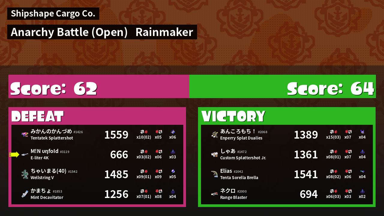 | Mode | Rainmaker - Anarchy Battle (Open) | ||