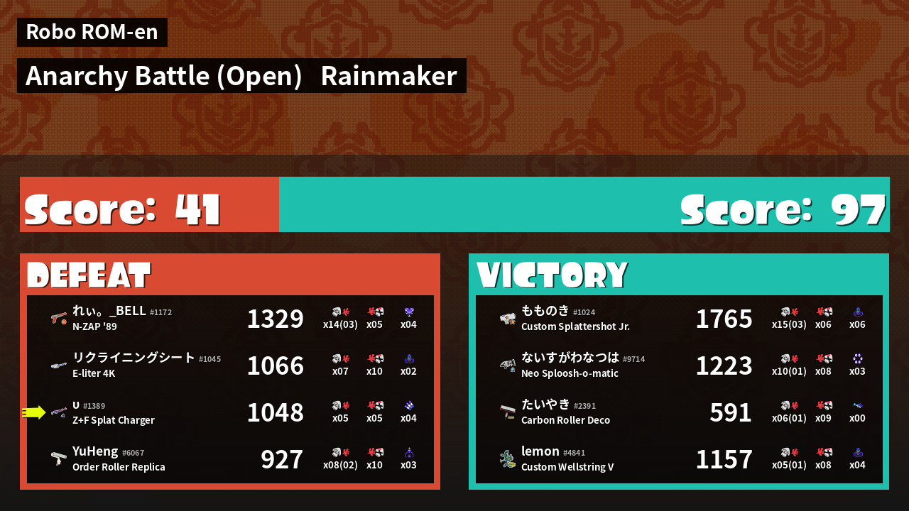 | Mode | Rainmaker - Anarchy Battle (Open) | ||