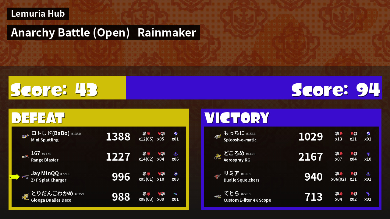 | Mode | Rainmaker - Anarchy Battle (Open) | ||