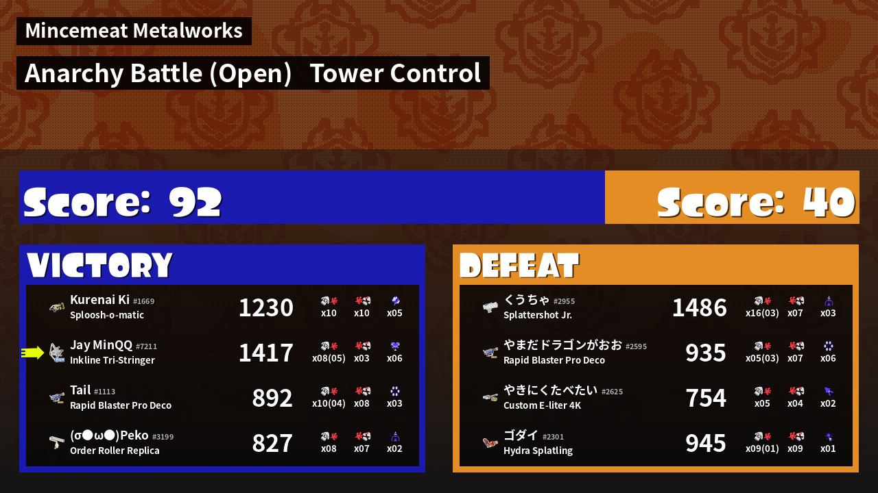 | Mode | Tower Control - Anarchy Battle (Open) | ||