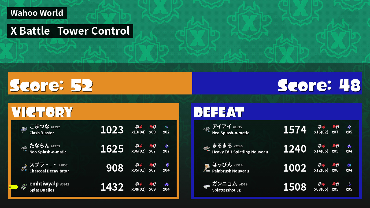 | Mode | Tower Control - X Battle | ||