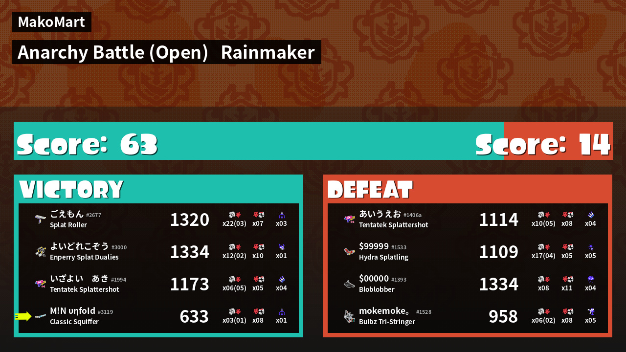 | Mode | Rainmaker - Anarchy Battle (Open) | ||