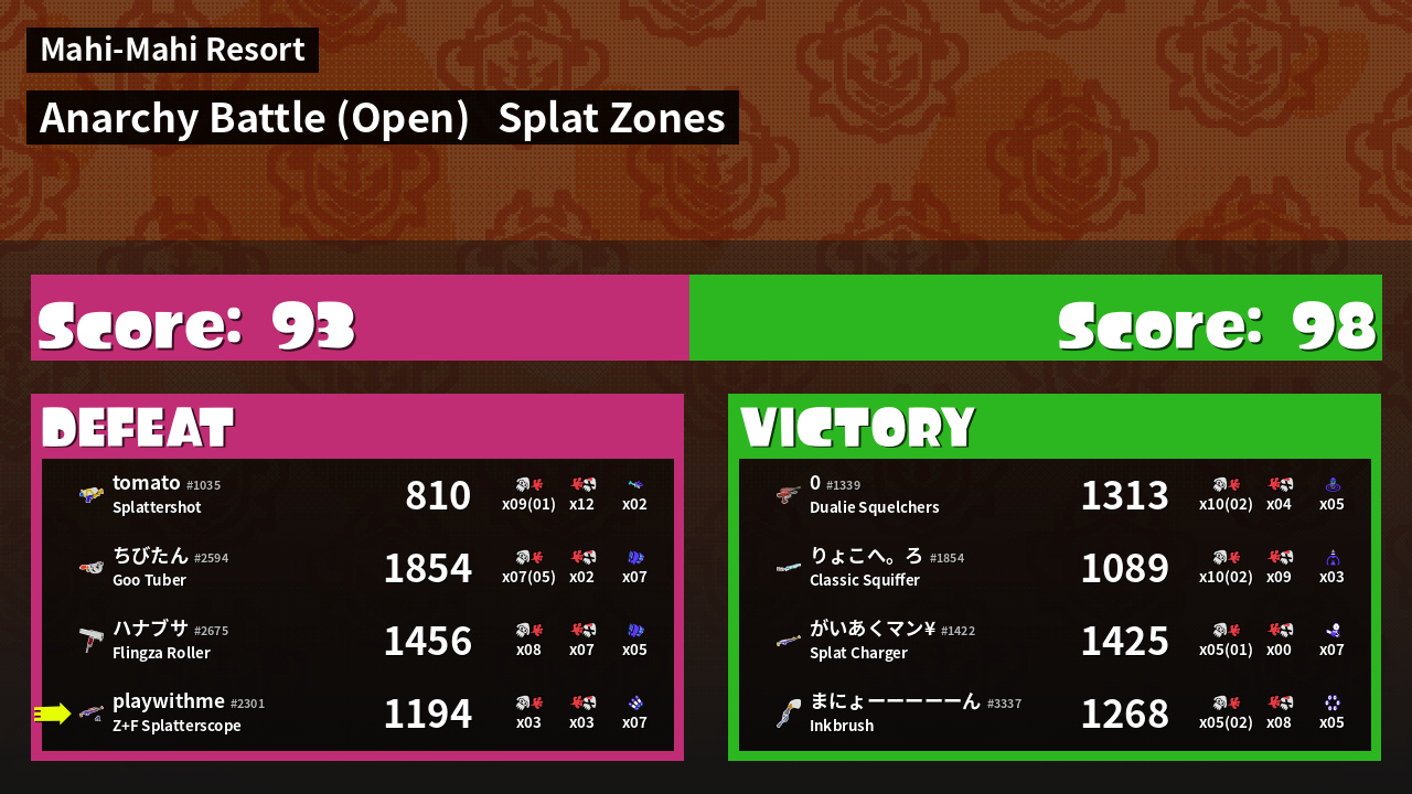 | Mode | Splat Zones - Anarchy Battle (Open) | ||