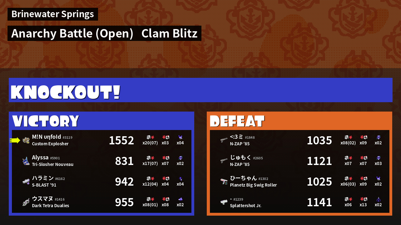 | Mode | Clam Blitz - Anarchy Battle (Open) | ||