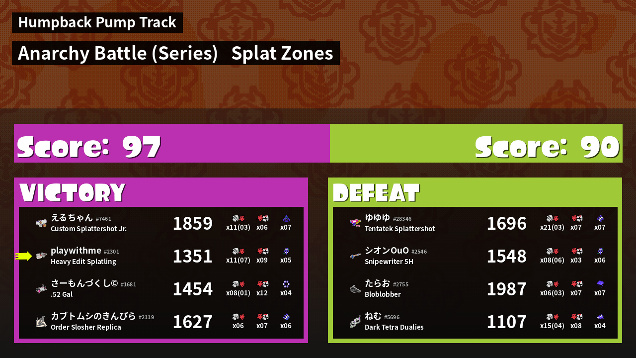 | Mode | Splat Zones - Anarchy Battle (Series) | ||