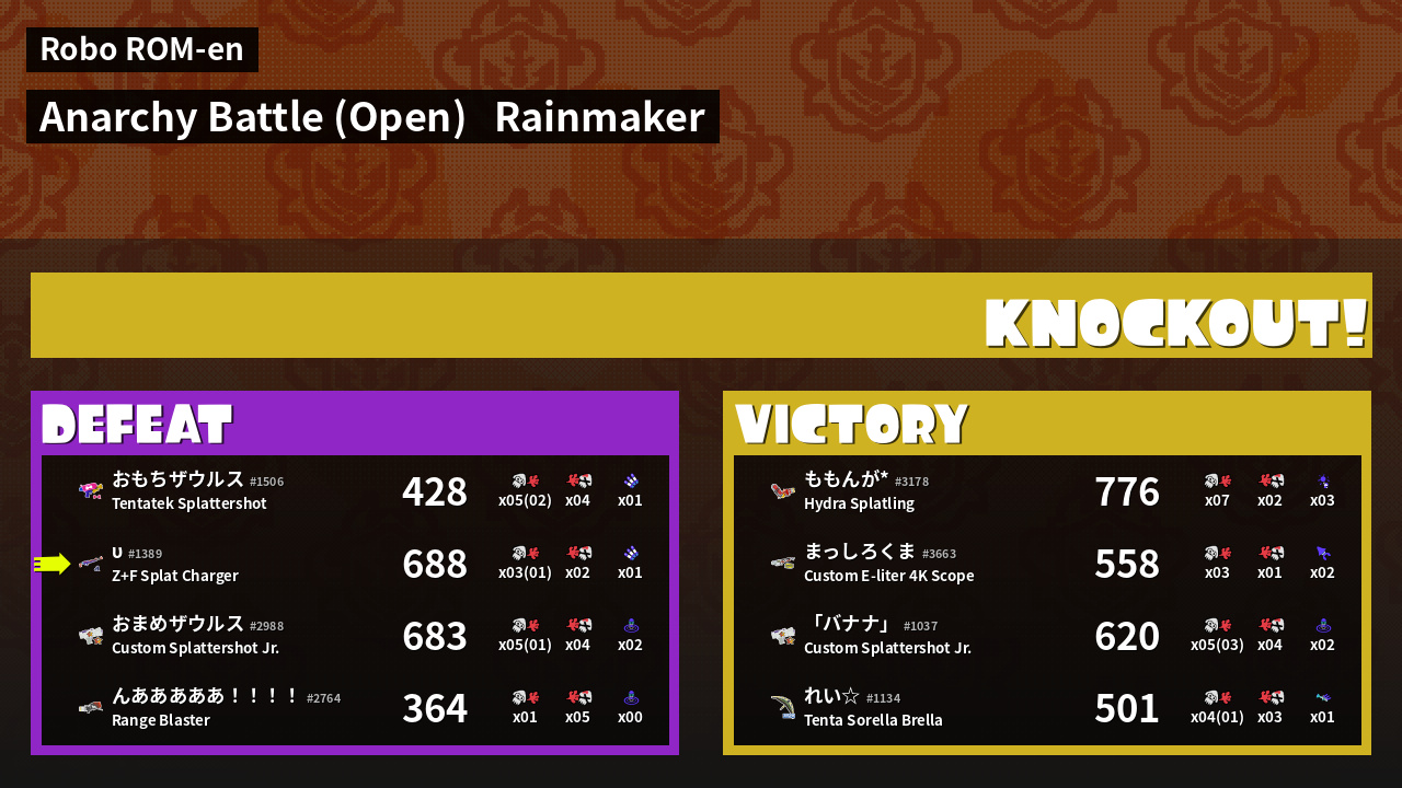 | Mode | Rainmaker - Anarchy Battle (Open) | ||