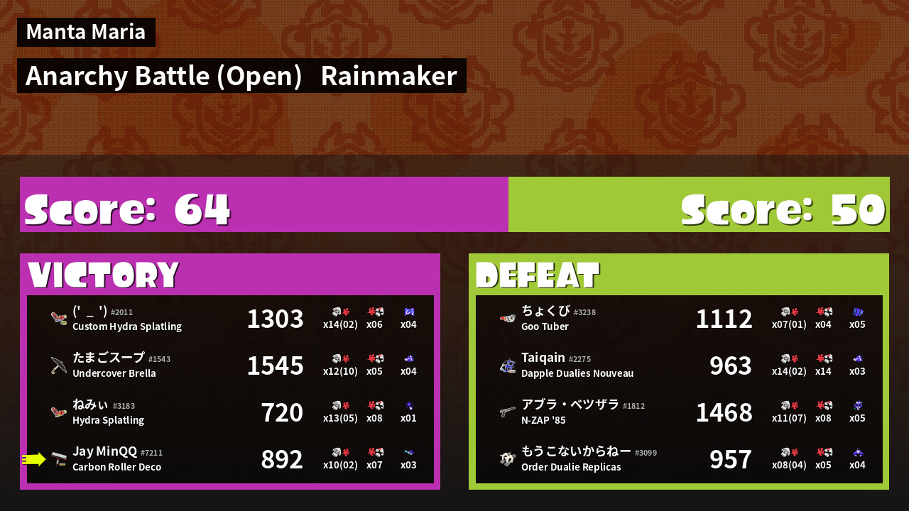 | Mode | Rainmaker - Anarchy Battle (Open) | ||