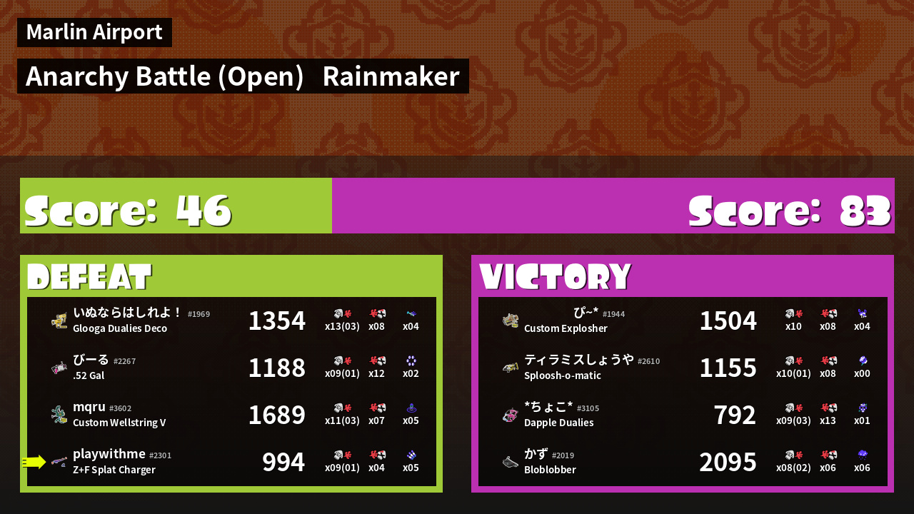 | Mode | Rainmaker - Anarchy Battle (Open) | ||