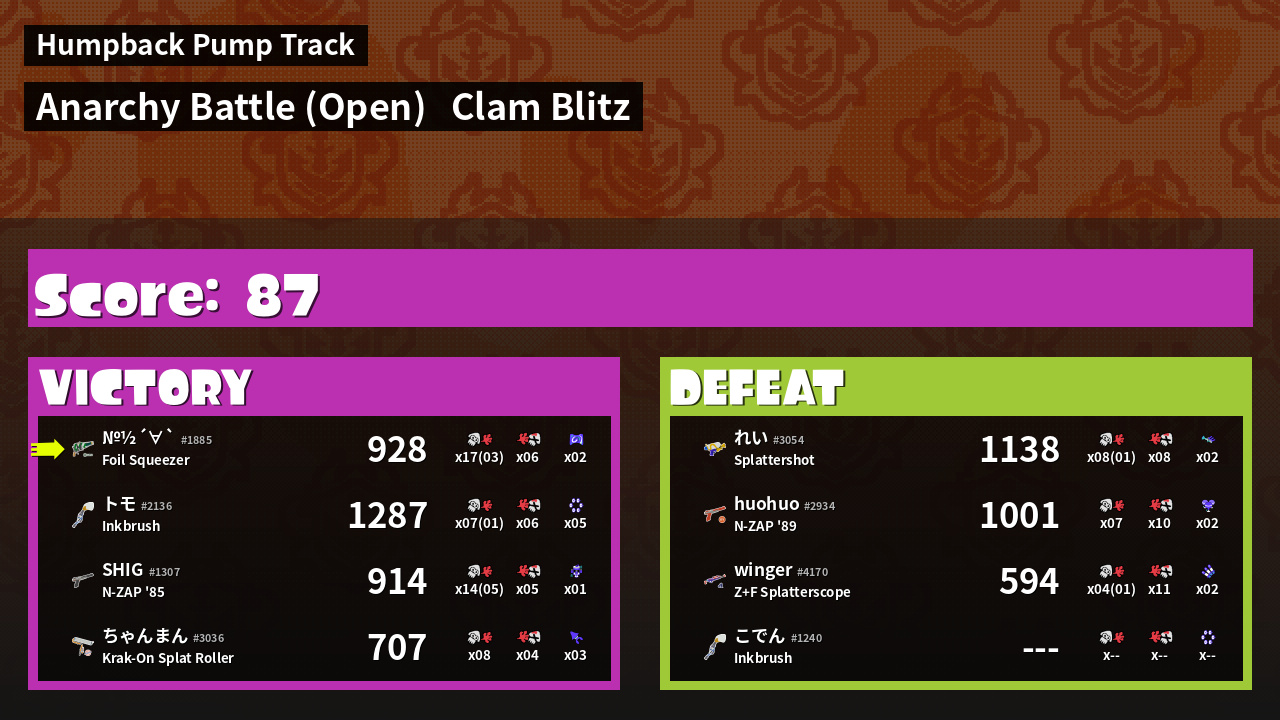 | Mode | Clam Blitz - Anarchy Battle (Open) | ||