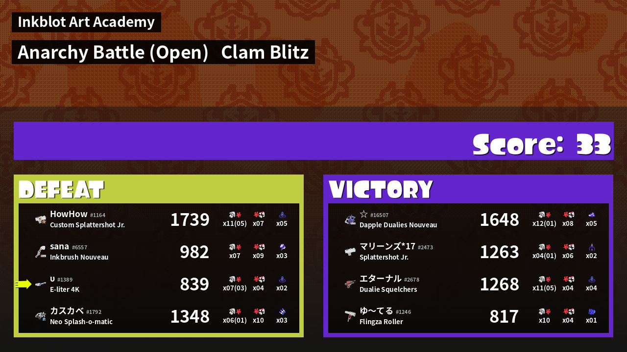 | Mode | Clam Blitz - Anarchy Battle (Open) | ||