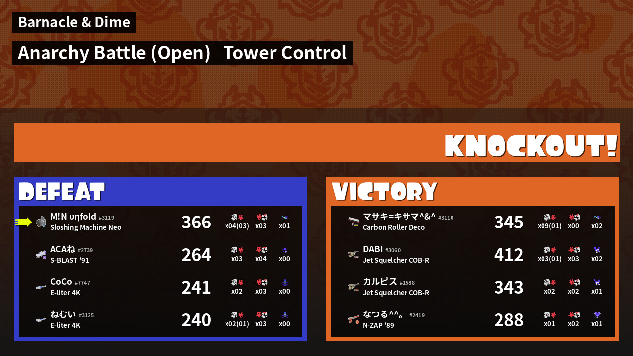 | Mode | Tower Control - Anarchy Battle (Open) | ||