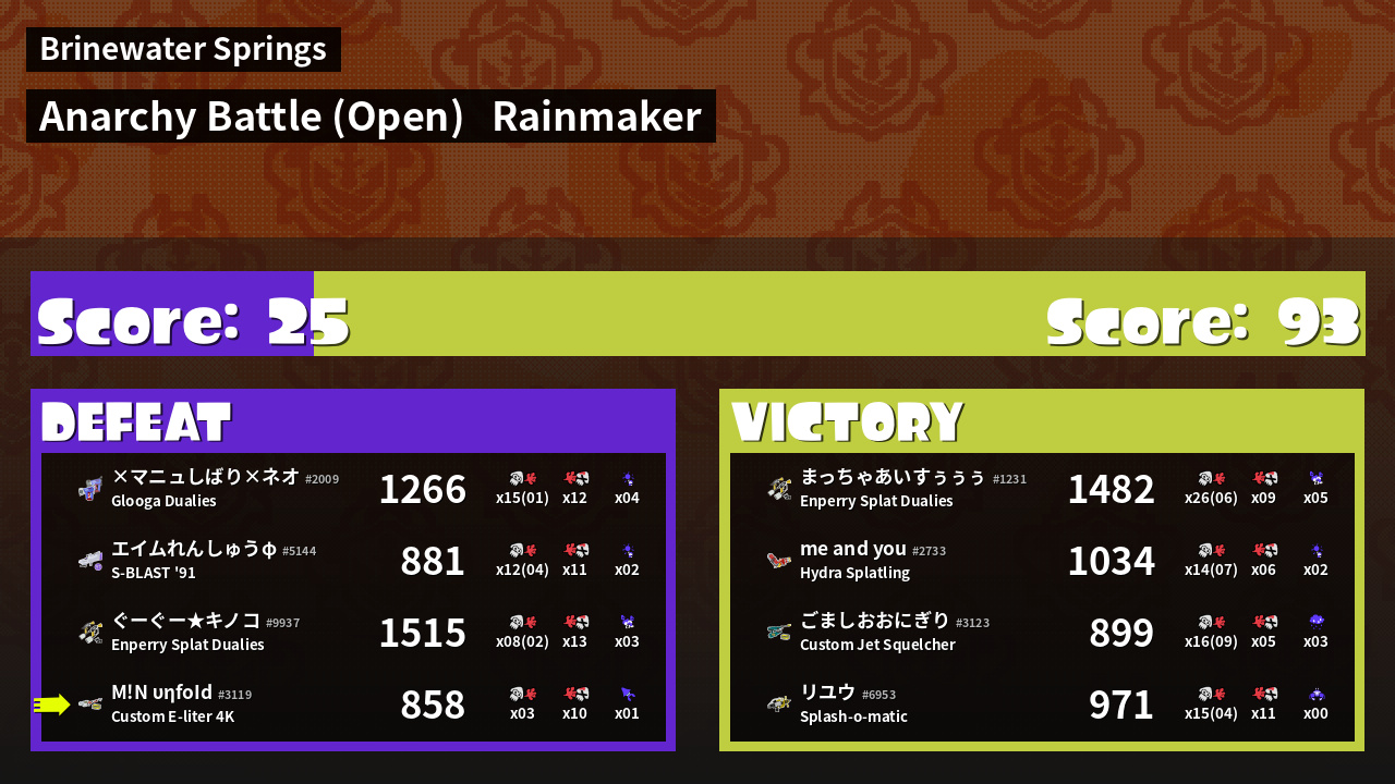 | Mode | Rainmaker - Anarchy Battle (Open) | ||