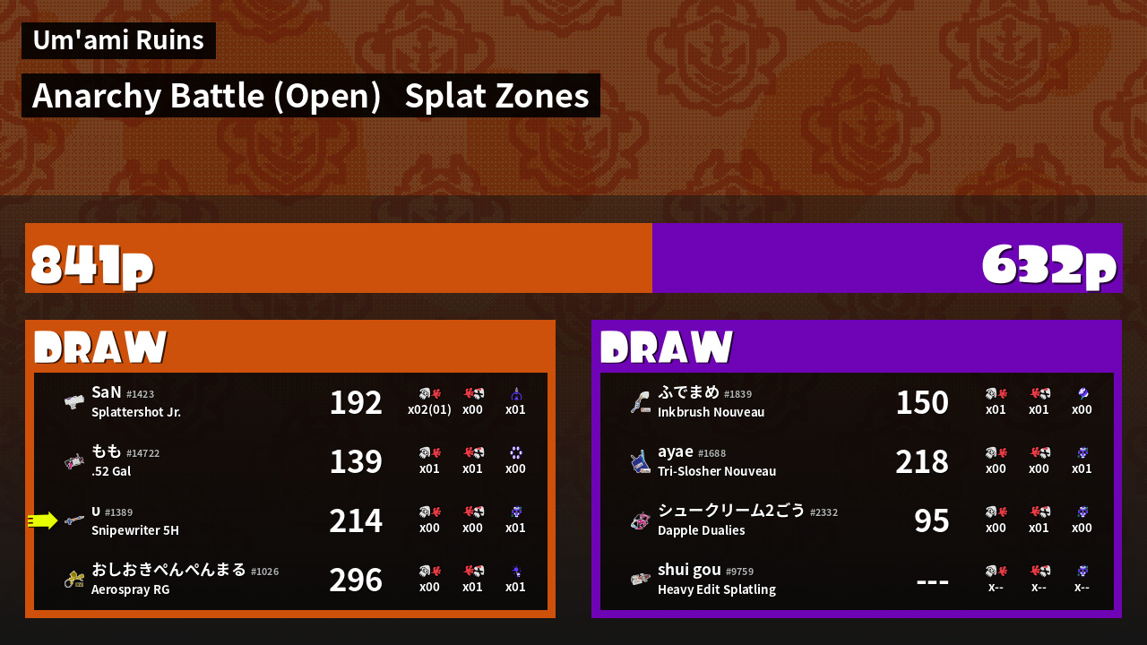 | Mode | Splat Zones - Anarchy Battle (Open) | ||