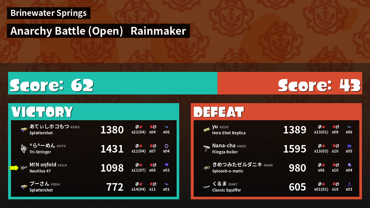 | Mode | Rainmaker - Anarchy Battle (Open) | ||