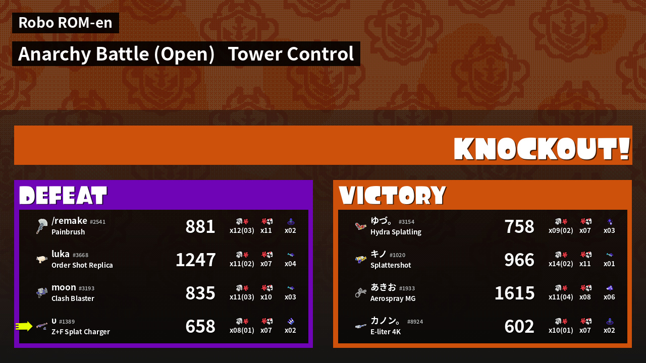 | Mode | Tower Control - Anarchy Battle (Open) | ||
