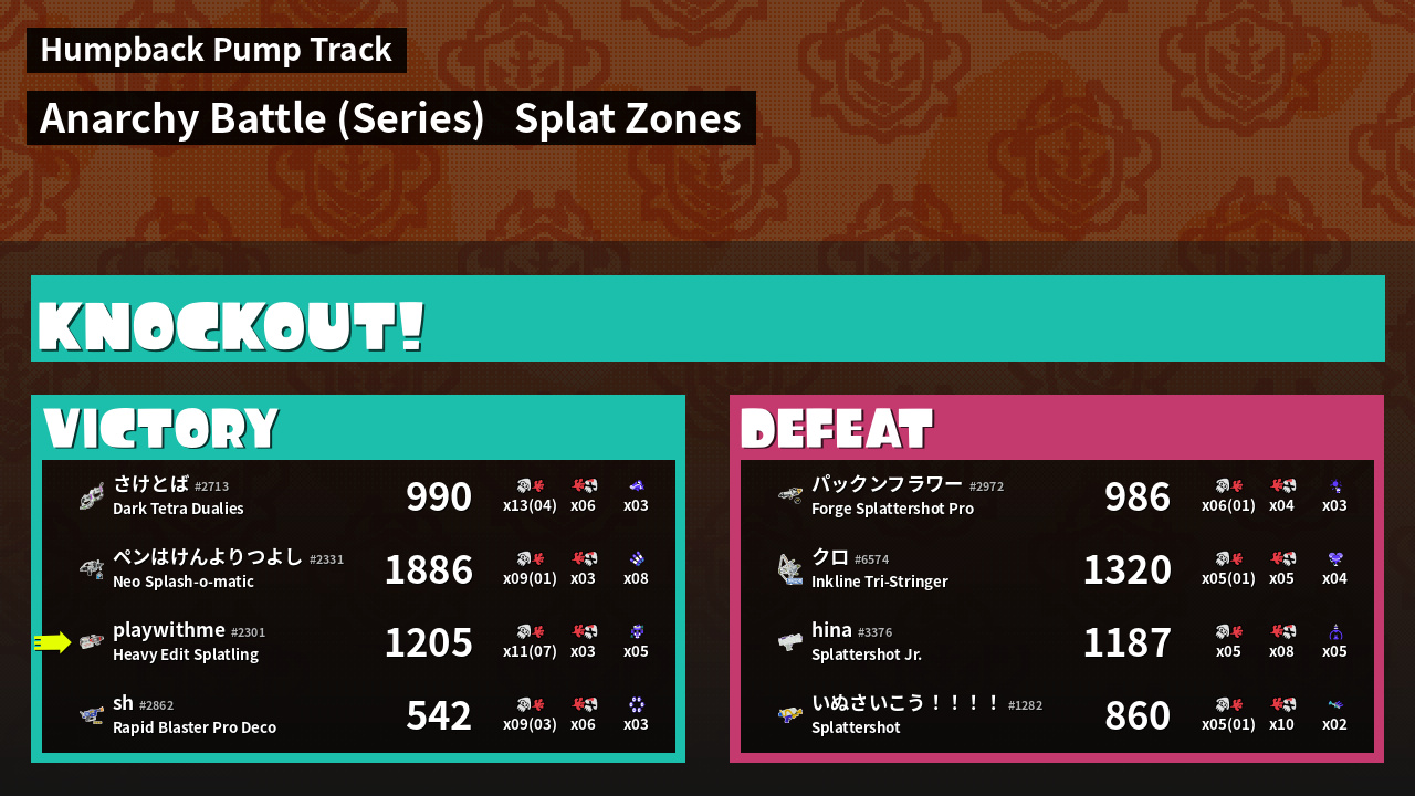 | Medals | #1 Splat Assister #1 Splat Zone Hero First Splat! | ||