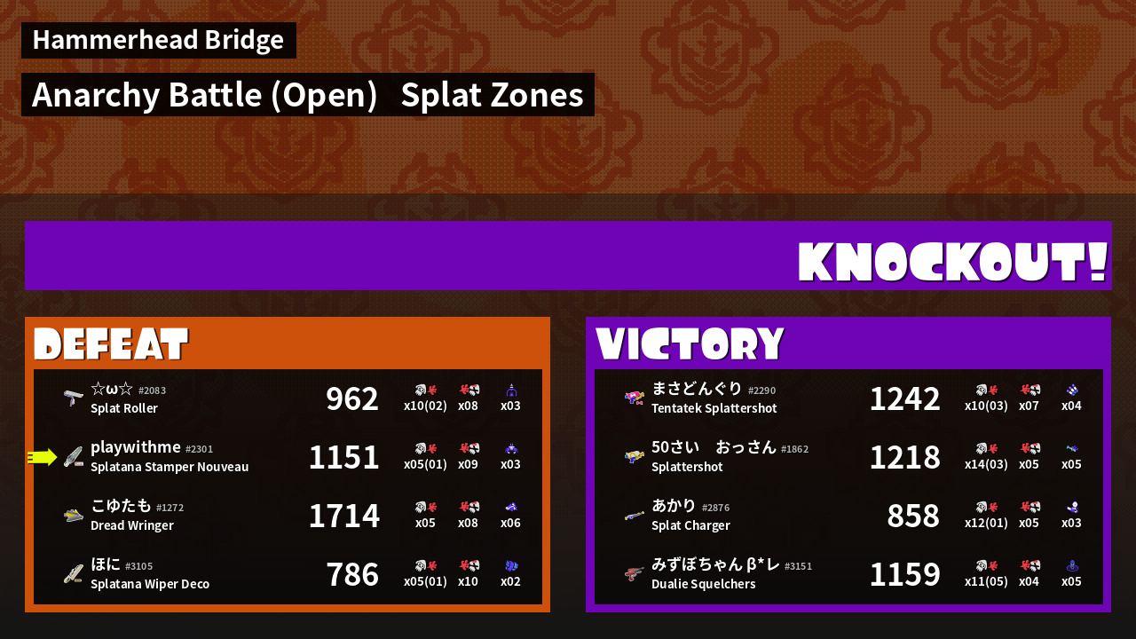 | Mode | Splat Zones - Anarchy Battle (Open) | ||