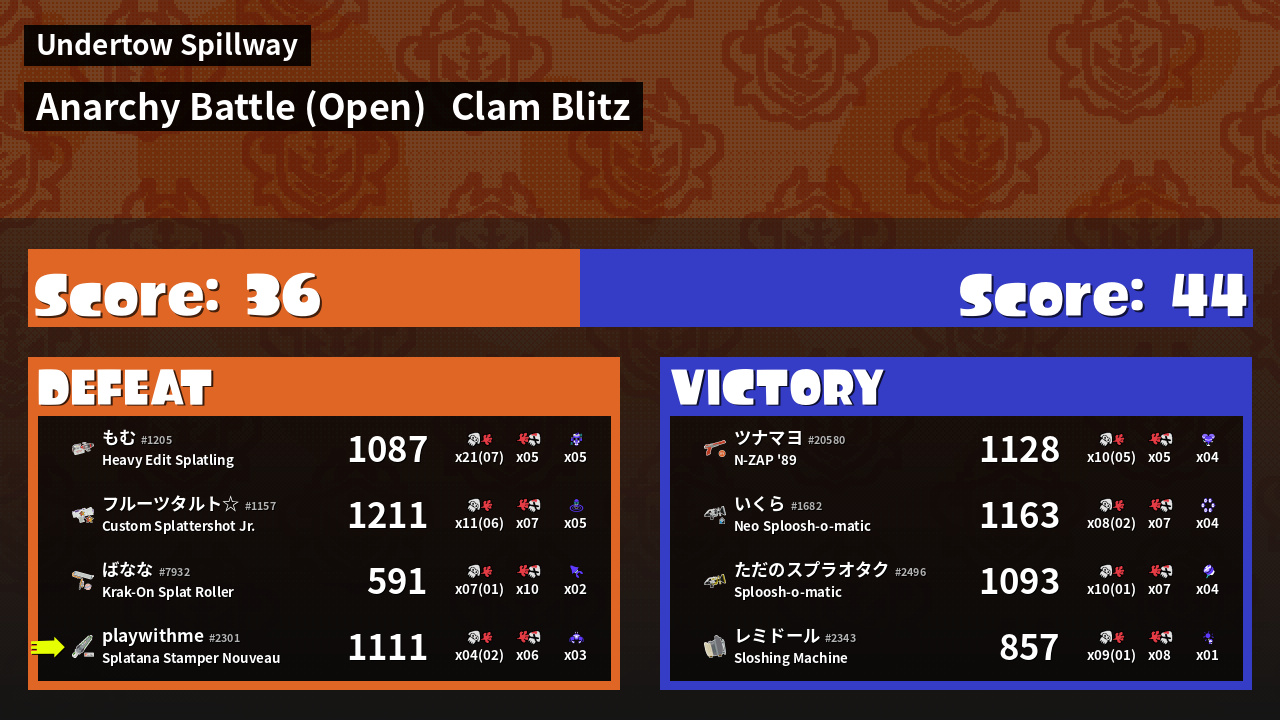| Mode | Clam Blitz - Anarchy Battle (Open) | ||