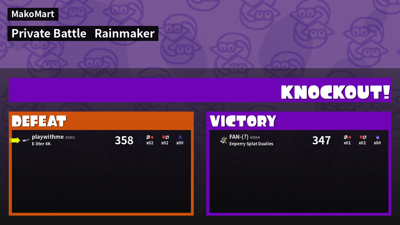 | Weapon | E-liter 4K ( Ink Mine / Wave Breaker) | ||