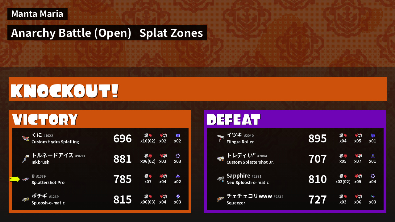 | Mode | Splat Zones - Anarchy Battle (Open) | ||