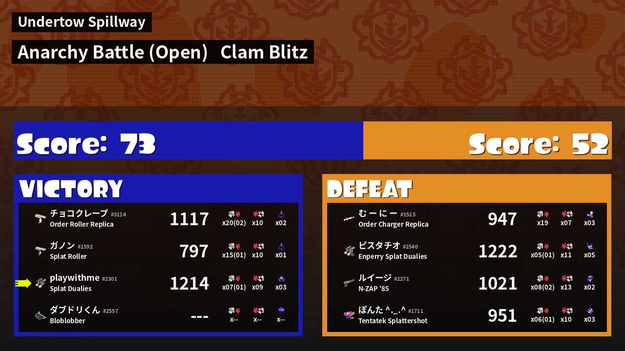 | Mode | Clam Blitz - Anarchy Battle (Open) | ||