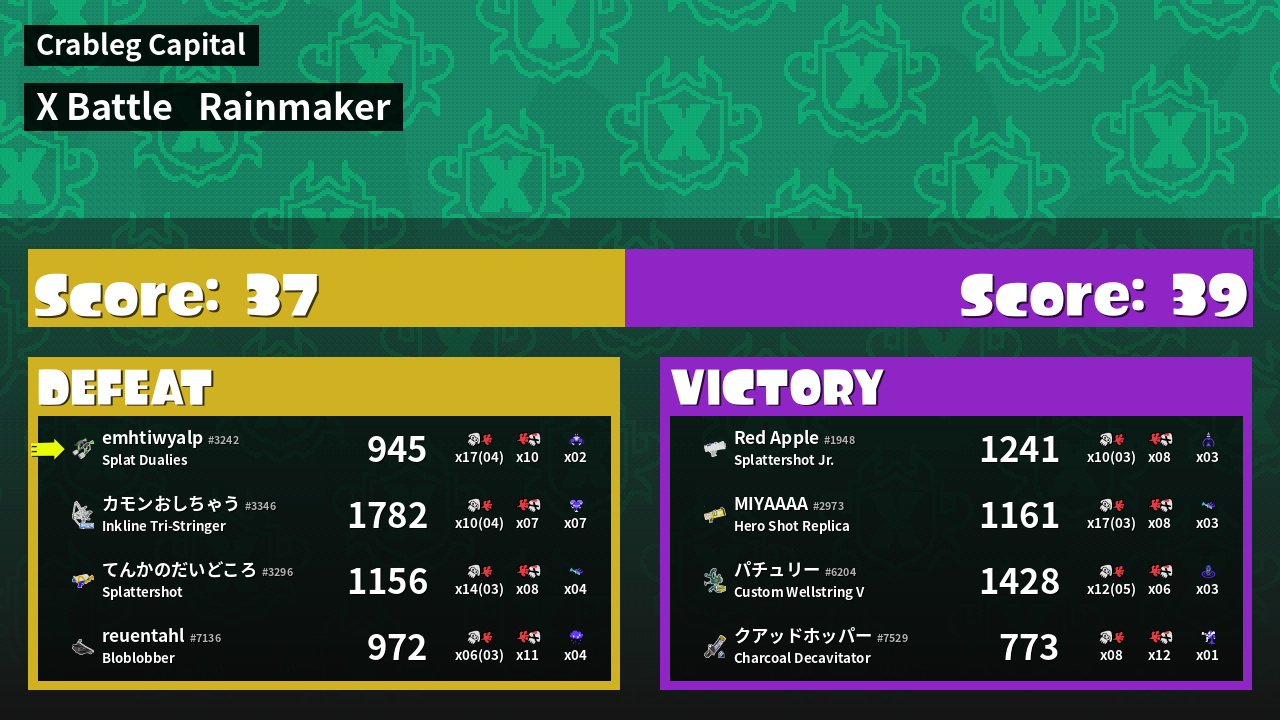 | Mode | Rainmaker - X Battle | ||