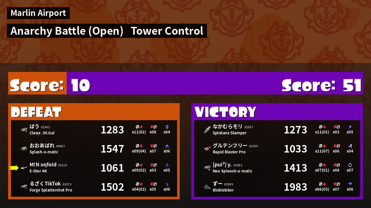 | Mode | Tower Control - Anarchy Battle (Open) | ||