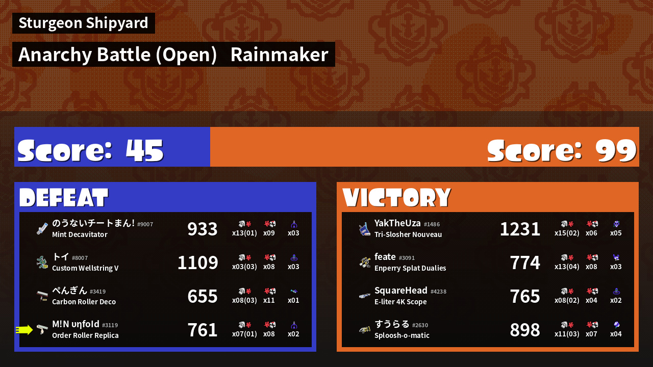 | Mode | Rainmaker - Anarchy Battle (Open) | ||