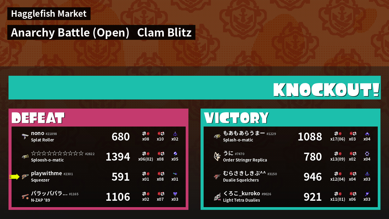 | Mode | Clam Blitz - Anarchy Battle (Open) | ||
