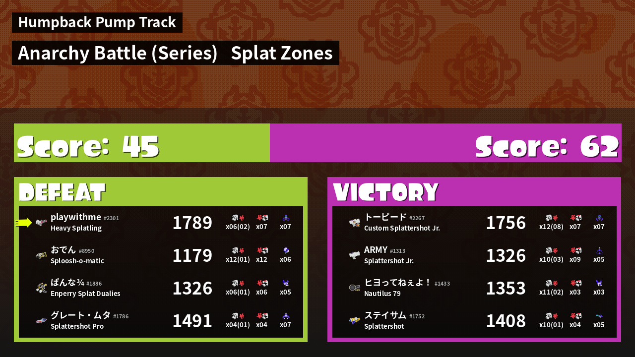 | Mode | Splat Zones - Anarchy Battle (Series) | ||